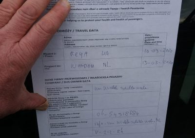 Om 00.30 uur vannacht zijn Marcel en Gert, na een voorspoedige reis, weer veilig thuisgekomen. Ze hebben een enerverende week achter de rug. Bij de grenzen ging het dit keer voorspoedig. Met 1,5 uur waren ze beide grenzen over. Aan de Poolse kant waren ze wat strenger. Ze werden 2 x getemperatuurd en ze moesten een formulier invullen waar ze geweest waren en waar ze naar toe gingen. Op de weg was al te merken dat er maatregelen waren genomen i.v.m. het coronavirus. Gelukkig konden zij het land nog uit, vandaag (14 maart) zijn grenzen met Polen voor buitenlanders, echt gesloten.